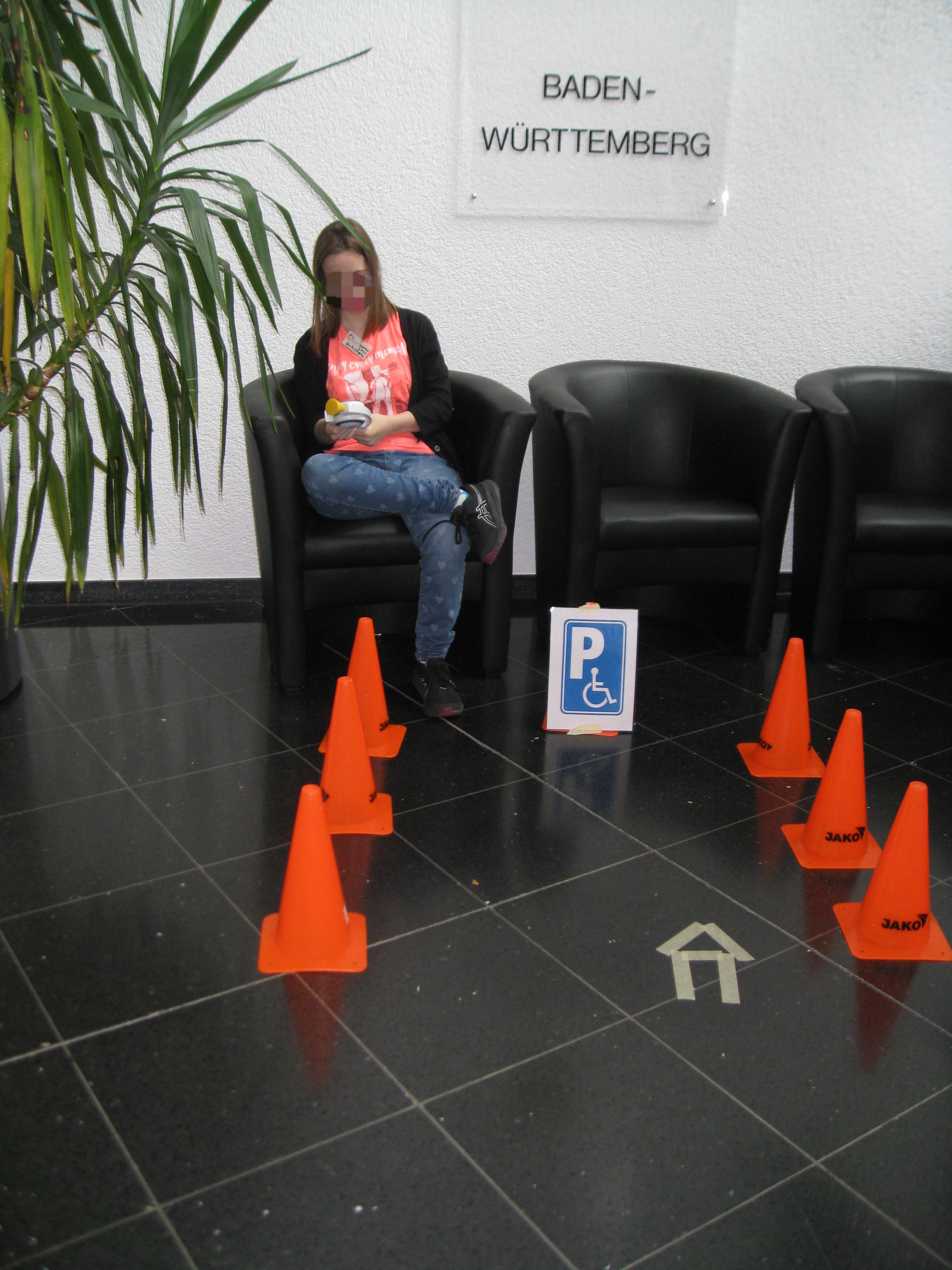 Im Oktober 2025 fand der Gesundheitsamt im Landesamt für Besoldung und Versorgung in Fellbach statt. Die Berufschulstufe der Fröbelschule Fellbach ermöglichte den Mitarbeitern einen Einblick in den Umgang mit dem Rollstuhl zu sammeln. Rund um das Thema "Rollstuhl" konnten Erfahrungen gemacht werden. Das Einparken auf dem Rollstuhlparkplatz war für nicht geübte Rollstuhlfahrer eine besondere Herausforderung.