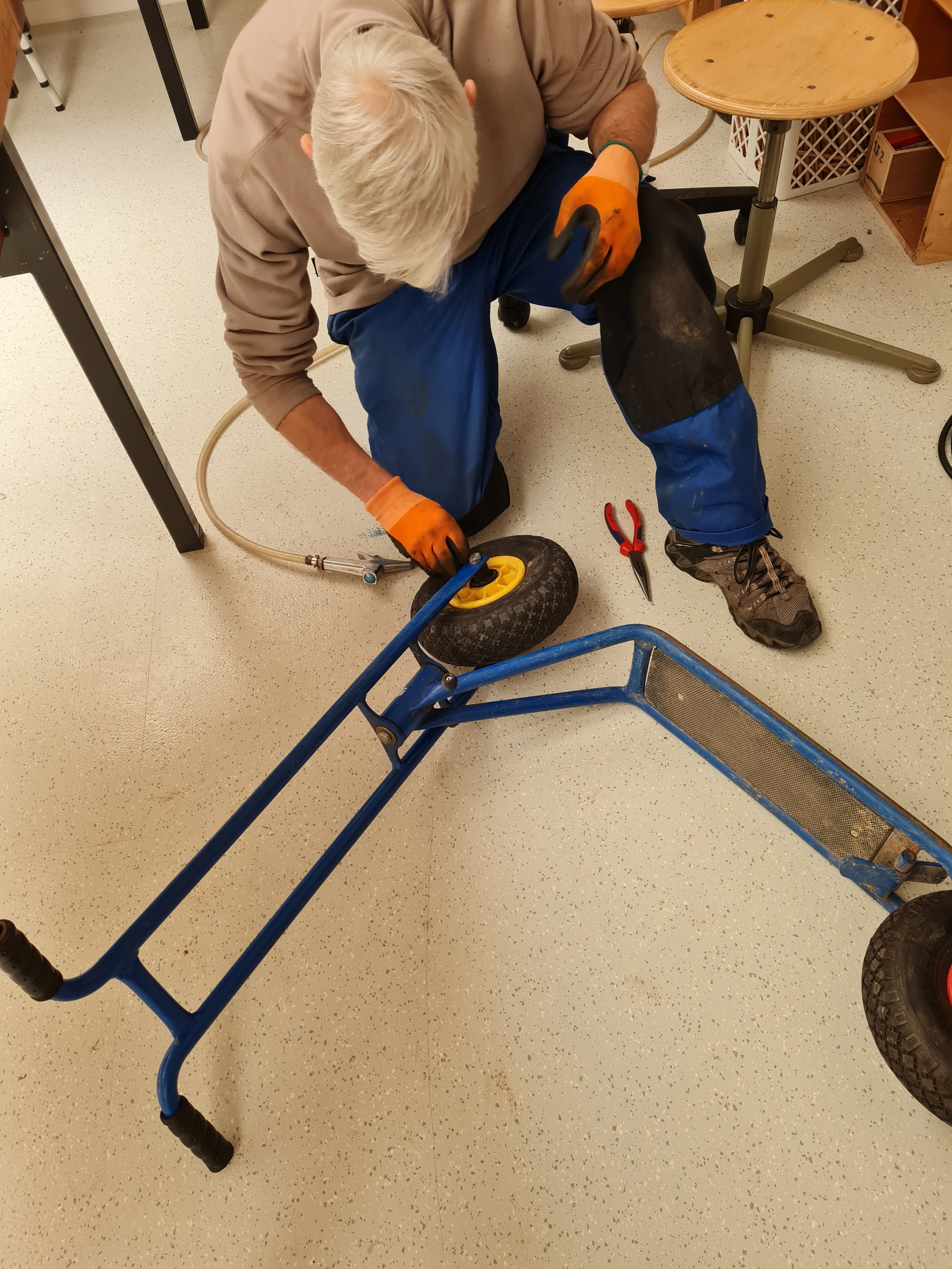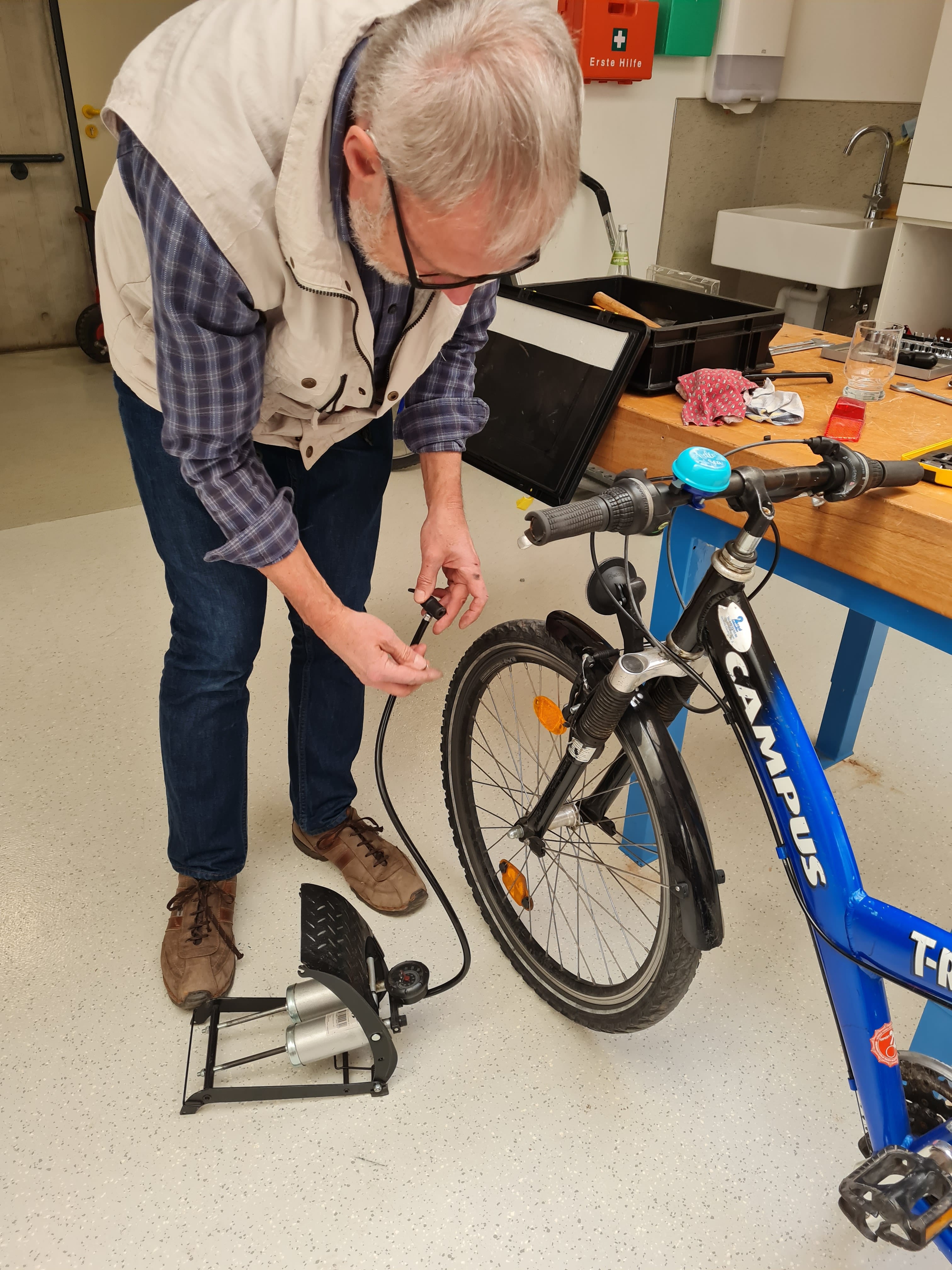 Unsere ehrenamtlichen Schrauber waren wieder am Werk. Der Fuhrpark der Fröbelschule Fellbach wurde von den fleißigen Männern fit für den Sommer gemacht. Luft wurde in die platten Reifen gepumpt, Ketten repariert und geschmiert.