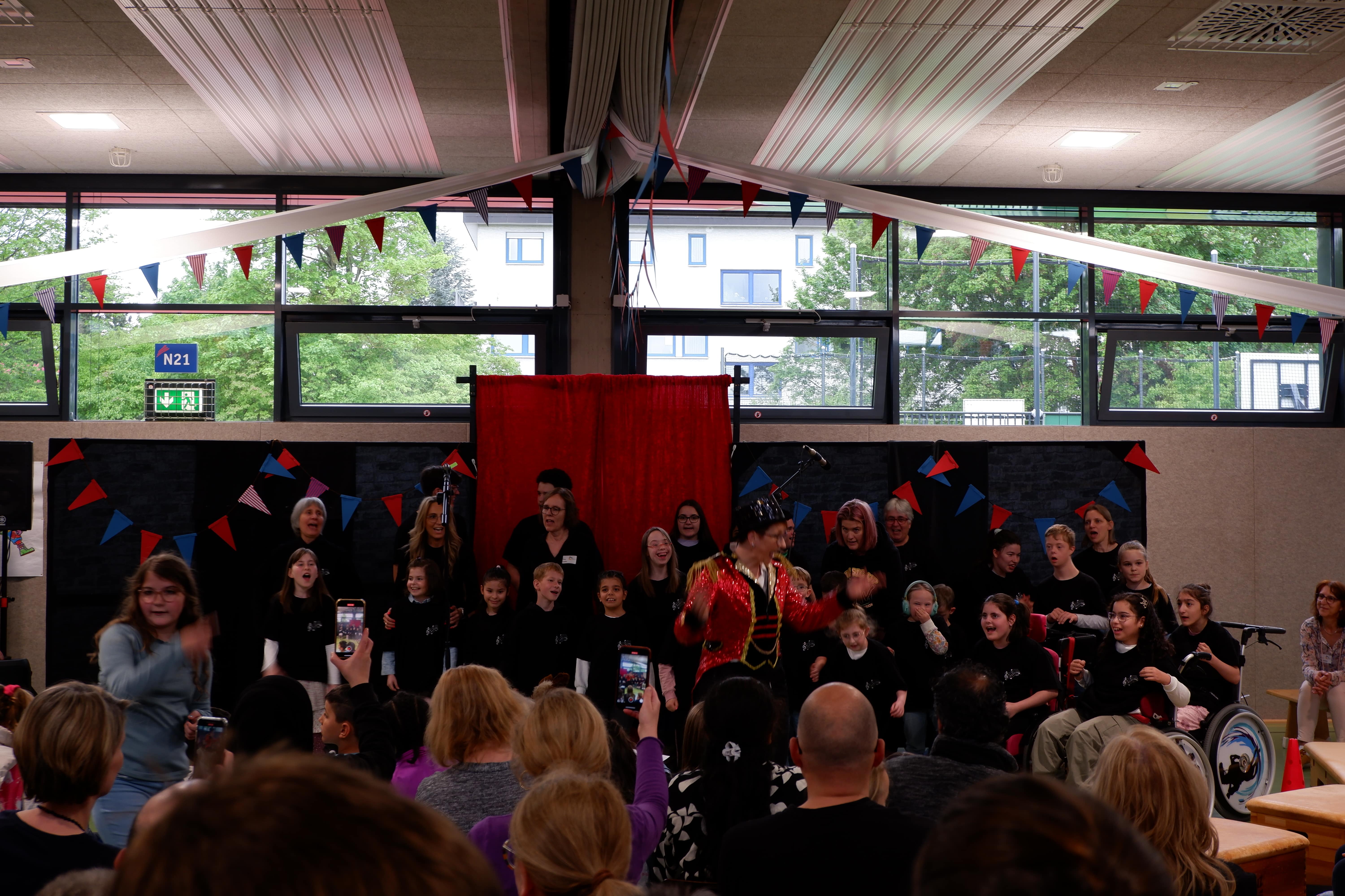 Am Freitag den 3. Mai 2024 fand das neu konzipierte Schulfest der Fröbelschule Fellbach statt. Unter dem Motto "Zirkus Fröbellini" hatte das Vorbereitungsteam gemeinsam mit dem Kollegium ein buntes Programm, tollen Kreativ - und Mitmach - Stationen sowie Schwarzlichttheater auf die Beine gestellt. Die SMV, der Förderverein und der Elternbeirat sorgte für das leibliche Wohl. Es wurden Würstchen gegrillt, Waffeln gebacken, frisches Popcorn gab es und selbstgebackener Kuchen der Eltern wurde verkauft.