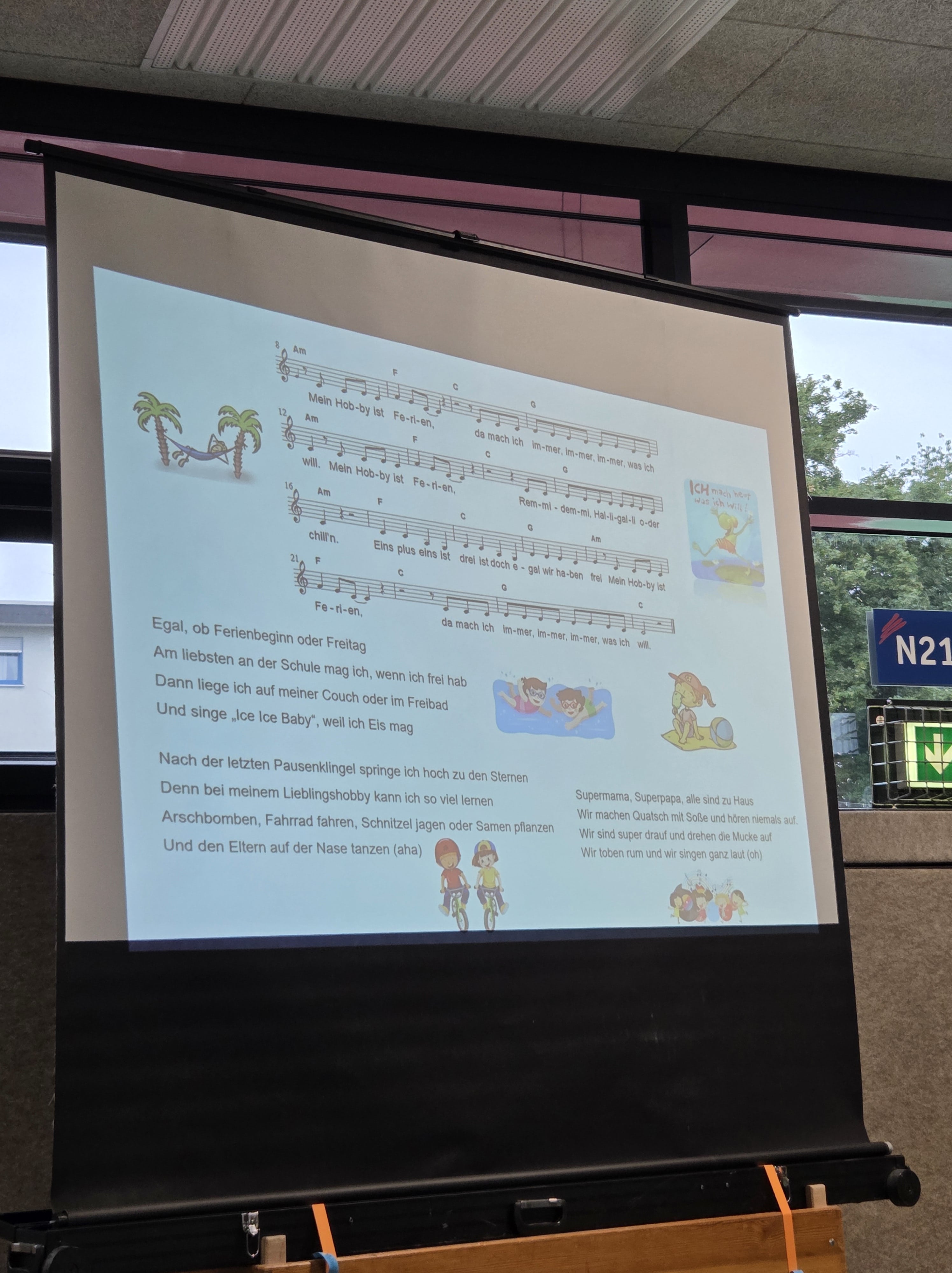 Im Mittelpunkt des Gottesdienstes stand das gleichnamige Lied „Mein Hobby ist Ferien“. Der Liedtext begleitete die Feier und regte zum Nachdenken an.