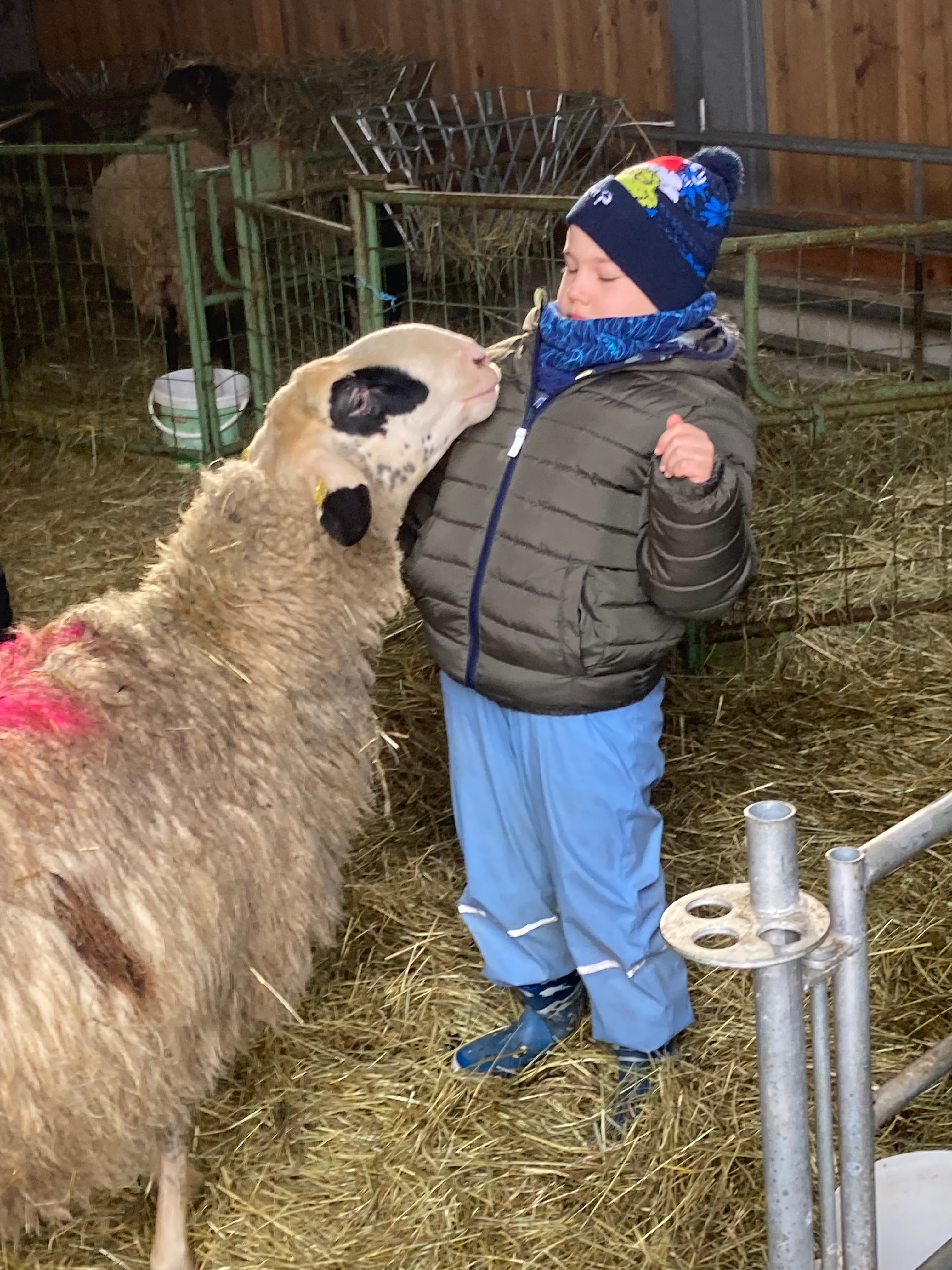 Während der Hinfahrt waren alle Beteiligten voller Vorfreude und auch ein bisschen aufgeregt. Dort angekommen bekamen wir von Frau Brencher erklärt, was wir beim Kontakt mit den Schafen zu beachten haben, und dann öffnete sie für uns auch schon Tür und Tor.