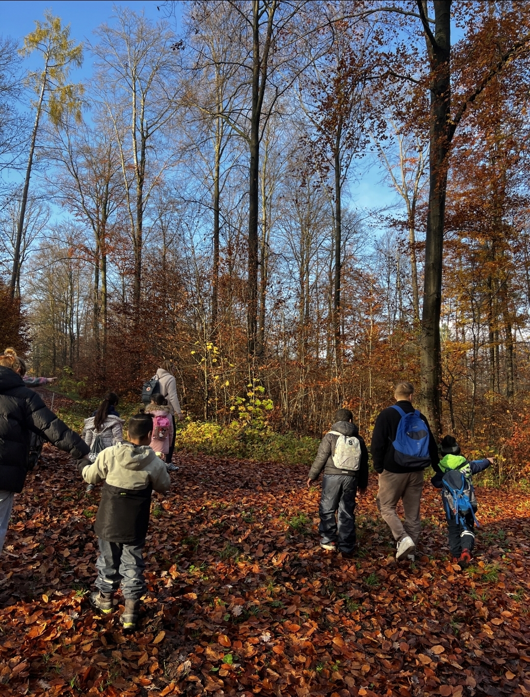 Am heutigen Waldtag machten sich die Fuchsklasse und die Igelklasse gemeinsam auf den Weg in den nahegelegenen Hartwald. Ziel war es, die Natur nicht nur zu erleben, sondern auch im Rahmen des Sachunterrichts das Thema Laubbäume praktisch zu vertiefen.